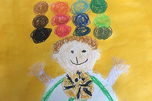 Dieses tolle Selbstportrait zeigt Joshua bei der Maltherapie. Seine Mutter schrieb uns dazu, dass es Joshua beim Malen gelinge, "Dinge zu verarbeiten ...